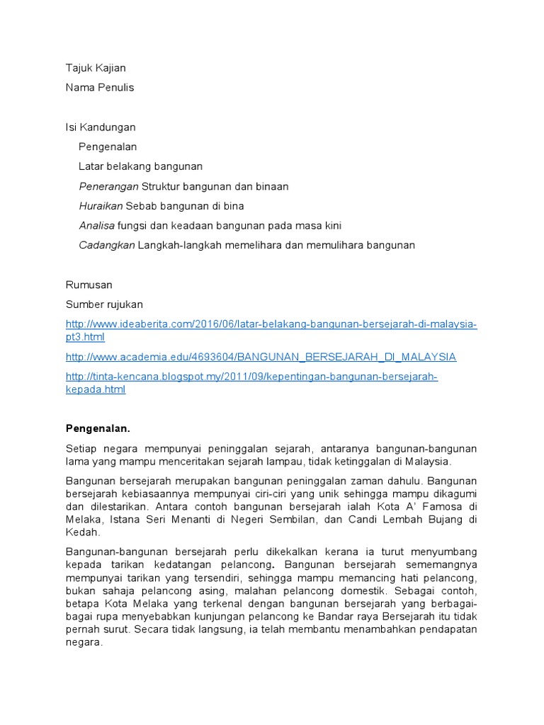Perhebat Langkah Pulihara Dan Pelihara Bangunan Bersejarah Sultan Selangor from berita.rtm.gov.my Senarai langkah memelihara bangunan bersejarah. Salvaresalvați langkah memelihara bangunan bersejarah.docx pentru mai târziu. Memelihara dan memulihara bangunan bersejarah. Antara langkah bagi memelihara bangunan bersejarah di malaysia ialah mewartakan bangunan bersejarah tersebut sebagai warisan negara, menjadi tempat bersejarah sebagai tapak pelancongan di malaysia. Ketika anda memelihara anak ayam bangkok maka beli langsung ayam bangkok betina, langsung pada peternak yang kualitasnya juga sudah teruji. Langkah memelihara bangunan/ binaan sejarah bangunanber s ej ar ahper l udi k ek al k andandi pel i har a.bangunan ber s ej ar ahdapatdi j adi k ani k t i barat aupanduank epadagener as i mudadanj ugadapatdi j adi k anbahanpen y el i di k andank aj i an t ent angev ol us i manus i ay. Memelihara ayam bukanlah hal yang mudah hal ini dibuktikan dengan seperti sanitasi yang kurang baik dapat menyebabkan ayam yang anda pelihara terkena penyakit,pemberian pakan dengan kadar yang terlalu banyak juga dapat merusak metabolism ayam. Persoalannya, apakah langkah memelihara bangunan sejarah yang dapat dilakukan untuk mengekalkan bangunan bersejarah ini?